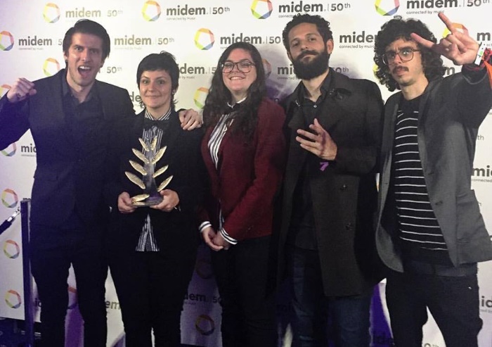 Cris: Vale dizer que no prêmio, como era uma edição comemorativa de 50 anos do Midem, estavam lá todas as pessoas que participaram dos Miden’s anteriores. Eles recebiam menção honrosa por cada participação, o evento estava cheio de velhinhos e do pessoal muito importante da música mundial. Vários CEOs de gravadora, o cara que descobriu o Ramones.