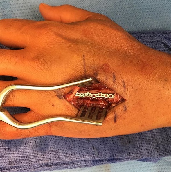Por lá, o músico mostrou a mão aberta e exposta, com um registro do procedimento que faz além da seguinte frase: