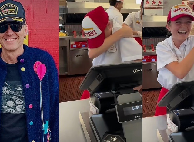 Ao lado da esposa, Nicole, o baterista fez uma visita especial à filha Olive, de 16 anos, em seu primeiro dia de trabalho. A jovem começou a trabalhar em uma unidade da rede In-N-Out Burger e o pai fez questão de registrar o momento.