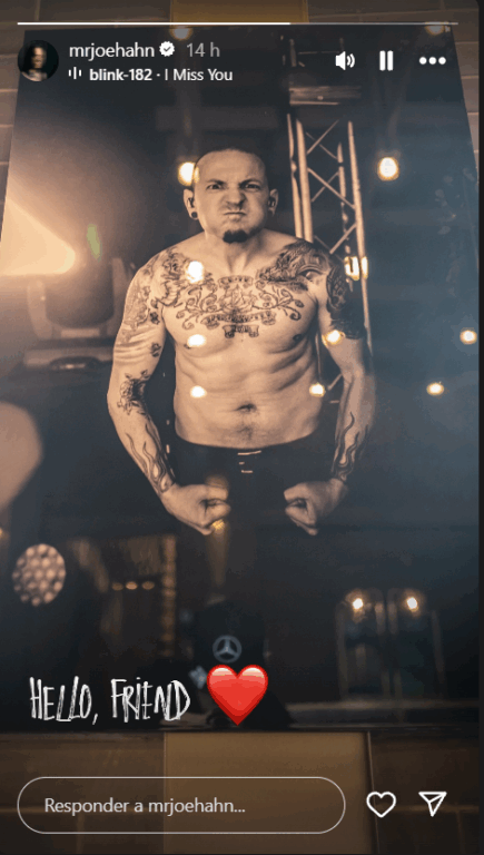 Como você pode ver no print ao final da matéria, Hahn usou a canção “I Miss You” para demonstrar aos seus seguidores seu carinho e saudade de Chester. Sob a legenda “Olá, amigo”, Joe compartilhou uma imagem de Bennington em preto e branco sem camisa e fazendo cara de bravo.