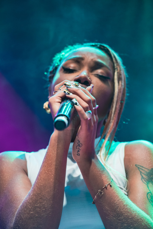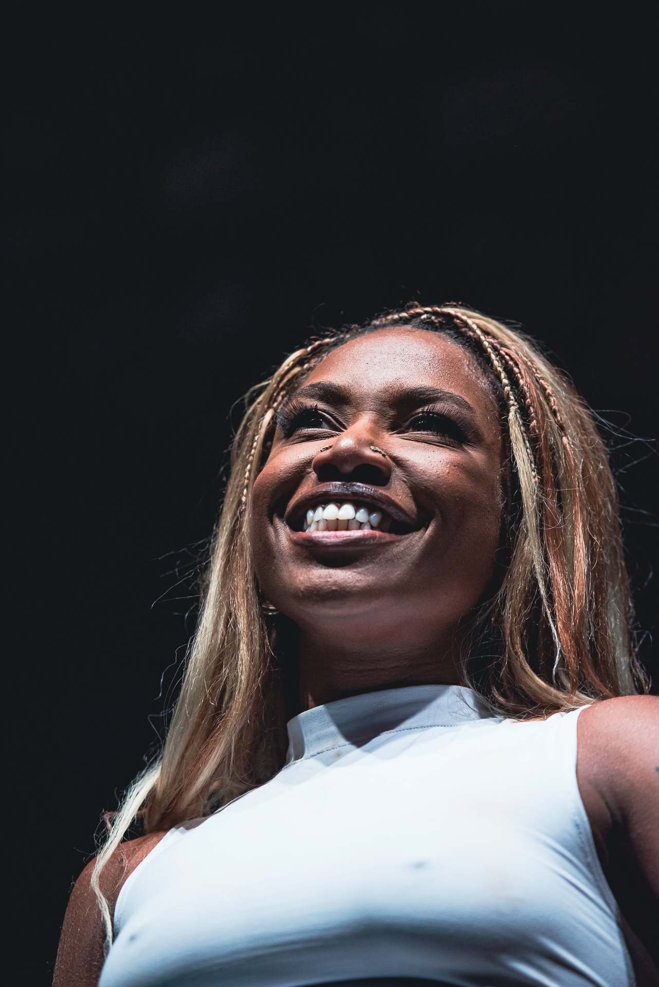 Aclamada do início ao fim do espetáculo, e auxiliada por um grupo de quatro belas e carismáticas dançarinas, Ebony conduziu o público a partir de músicas como “Parte do Mundo”, que abriu a apresentação, e “SXO”, canção de Carlos do Complexo e LARINHX gravada no estúdio junto com a atração do dia.
