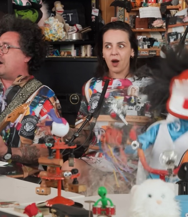 No Tiny Desk, a trupe apresentou um set vibrante e teatral, com direito a neblina cenográfica, solos de guitarra e coreografias, provando que o espírito criativo do grupo segue intacto. A apresentação incluiu sete faixas clássicas, entre elas “Mi Equilibrio Espiritual”, “Bailan sin Cesar”, “Objeción Denegada” e “Mi Muñeca me Habló”, além do hino geracional “Yo Nunca Vi Televisión (Y Luego Sí Pero Después No)”.