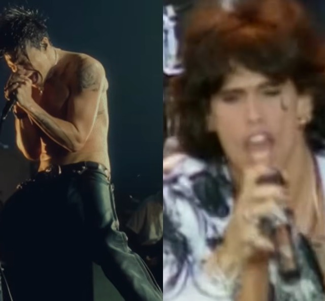 O registro também revela tanto a multidão que lotava o show da banda de Steven Tyler, quanto a legião que hoje acompanha as performances de YUNGBLUD com a mesma intensidade.