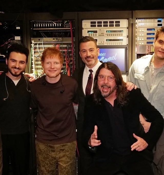 • Ed Sheeran apresenta 'Drive' no Jimmy Kimmel Live! com Dave Grohl e John Mayer, formando uma superbanda de rock.