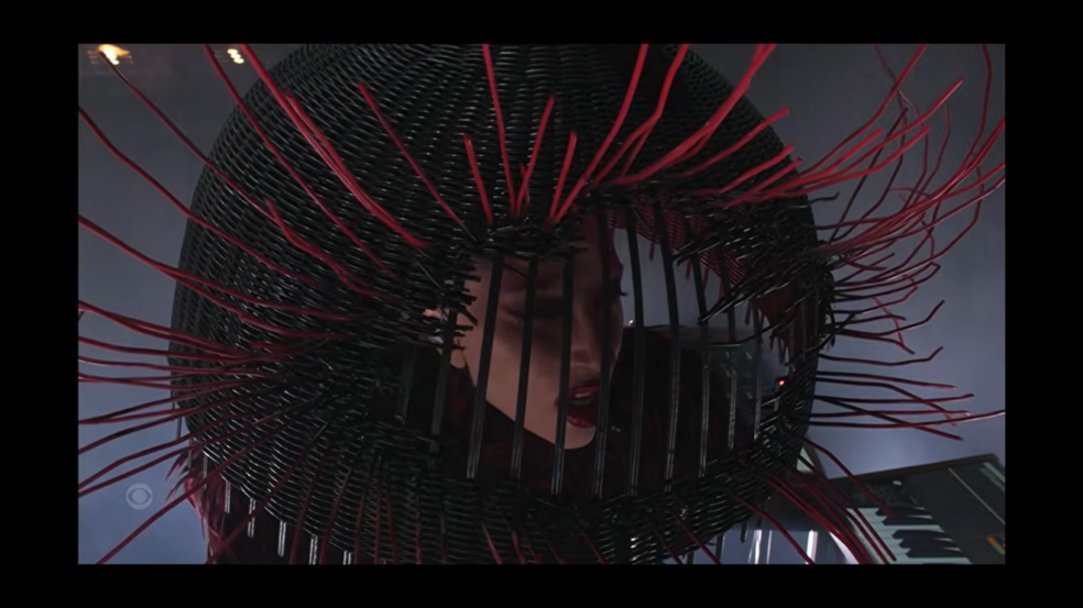 Com o torso coberto por penas pretas e vermelhas, uma longa saia de couro e uma bengala preta nas mãos, Gaga encarou a câmera enquanto apresentava a versão com vocais sombrios e uma entrega quase ameaçadora, que trouxe uma abordagem puxada para o Rock Industrial. Isso foi reforçado pela presença do guitarrista e produtor Andrew Watt e do baterista Josh Freese, que recentemente voltou ao Nine Inch Nails após uma passagem pelo Foo Fighters.